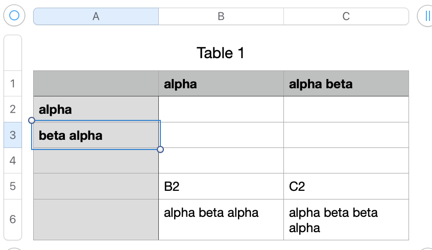 OFFSET Formula Table cell C2 =OFFSET(Table 1::$A$1,MATCH(A2,Table 1::$A,0)−1,MATCH(B2,Table 1::$1:$1,0)−1)