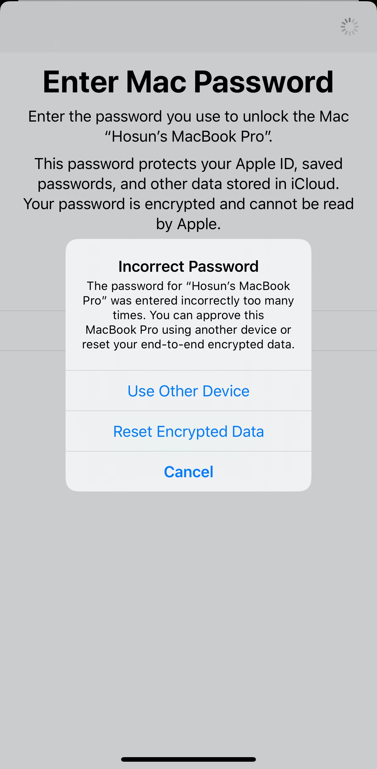 My password to Mac is OK in opening Mac.