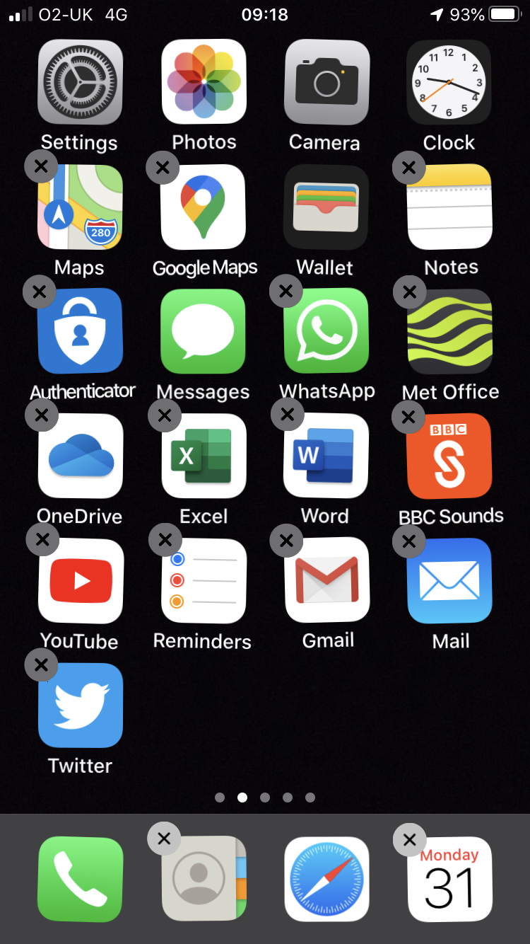There is no Delete option, only rearrange home screen and share. How do I delete an app? (iPhone user since first iPhone)