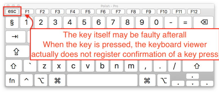 If you are still there could you do me a small favor please? If you could open the keyboard viewer and press the ESC key. It turns out that it really is not registering in my keyboard viewer. I tried using the escape key in apps that accept this key as a means of escaping full screen and it is not reacting to the key press. I am beginning to suspect that the key is actually faulty.
