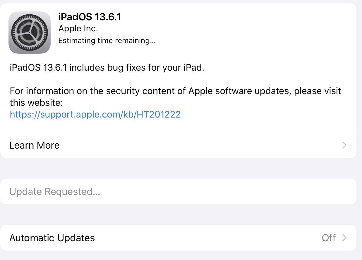 I am unable to upgrade the software to 13.6.1 , when I am trying to update. Page just remaining like this. Please check the attached screen shot. Not updating- just remaining as Estimated time remaining