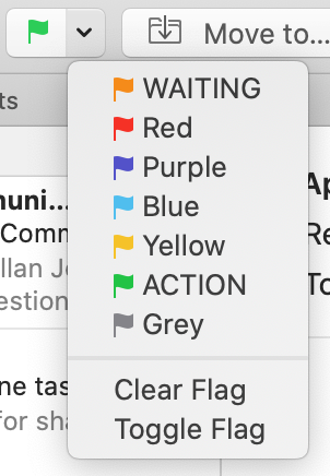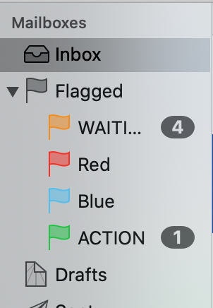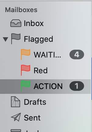As per the image below, i have placed a Green flag labelled "ACTION" on some emails. I also have another Orange flag labelled "WAITING" which currently doesn't have any emails.