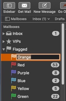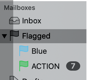 The Flagged folder shows Blue for no reason, and this changes randomly to any coloured flag. Is there a way to pin my two labelled flags (ACTION and WAITING) on the Flagged sidebar?