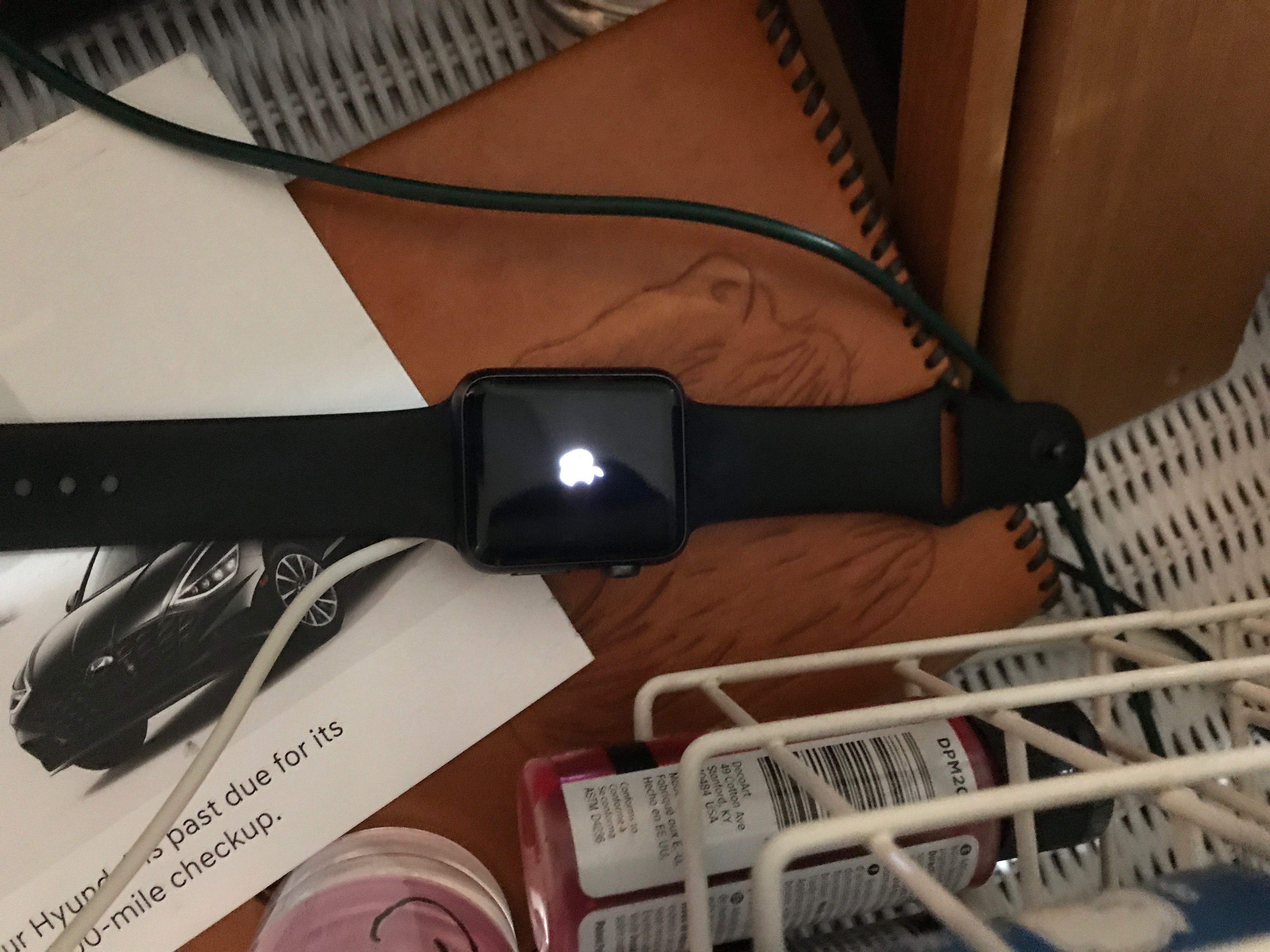 When put charger on watch the Apple logo come upFor about 10 second and then fades away then comes back on and repeats this. Won't let me turn on or force on by holding both buttons.
