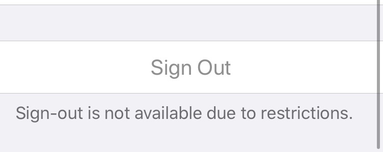 The sign out button is grey and says I can’t sign out due to restrictions but I don’t what it means by restrictions because it was fine before