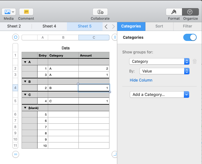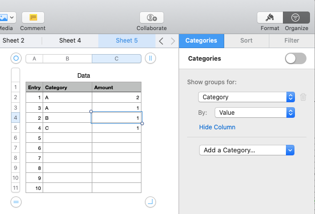Or you can get the same result without a formula by adding two categories in the right sidebar like this: