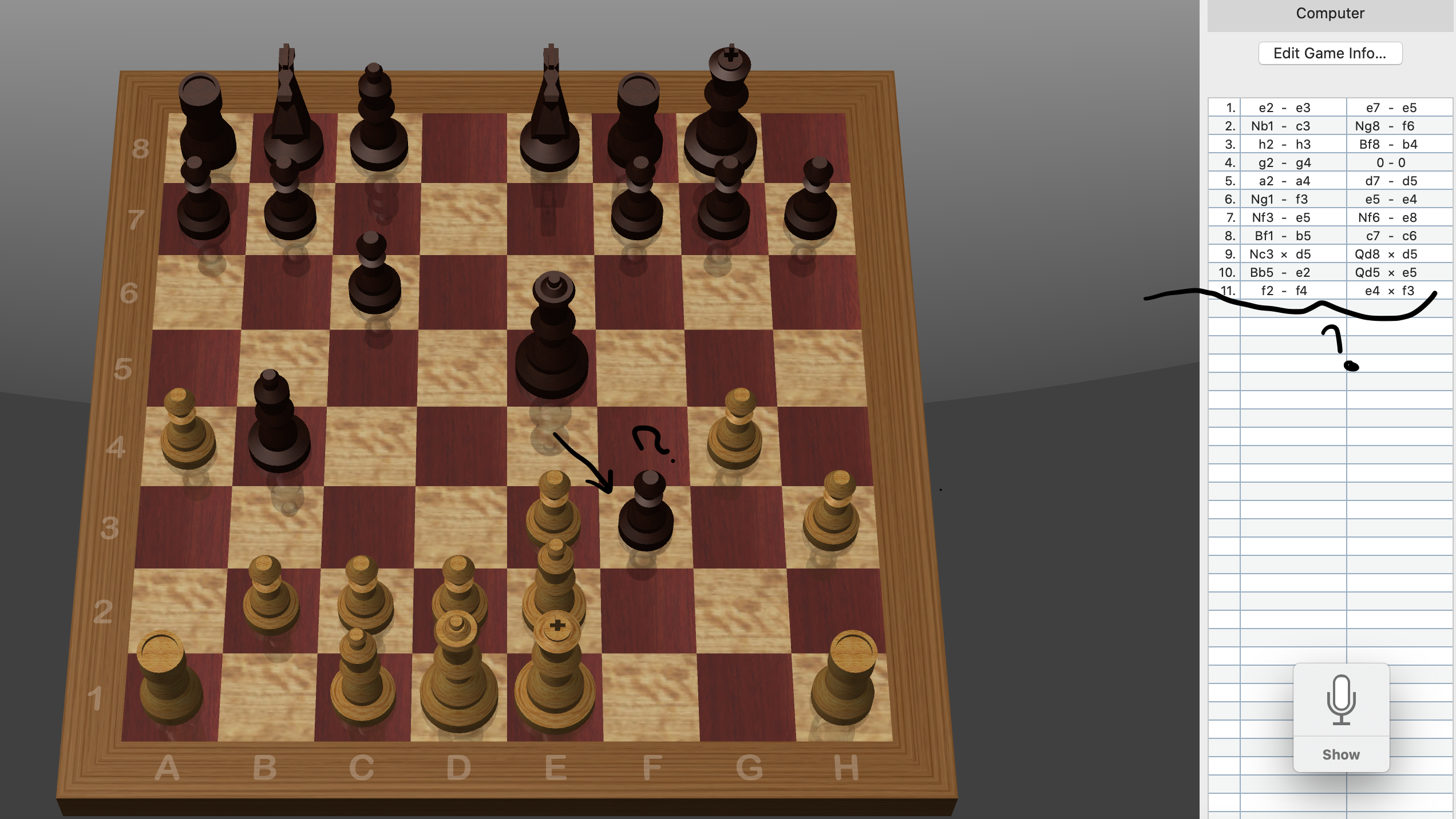 White pawn is at f4 and the black pawn is in E4. The black pawn cannot kill the white pawn, but the computer (black) moves to F3 and my white pawn disappears (or is killed). This is a bug. Attached screenshot for reference. Pls check and fix of possible. Thanks