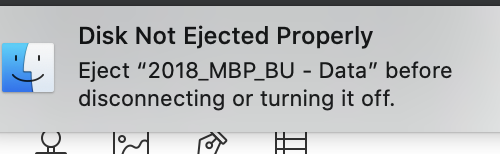 After I eject the regular volume without the Eject All choice, I'll usually (but not always) get the following message over an hour later: