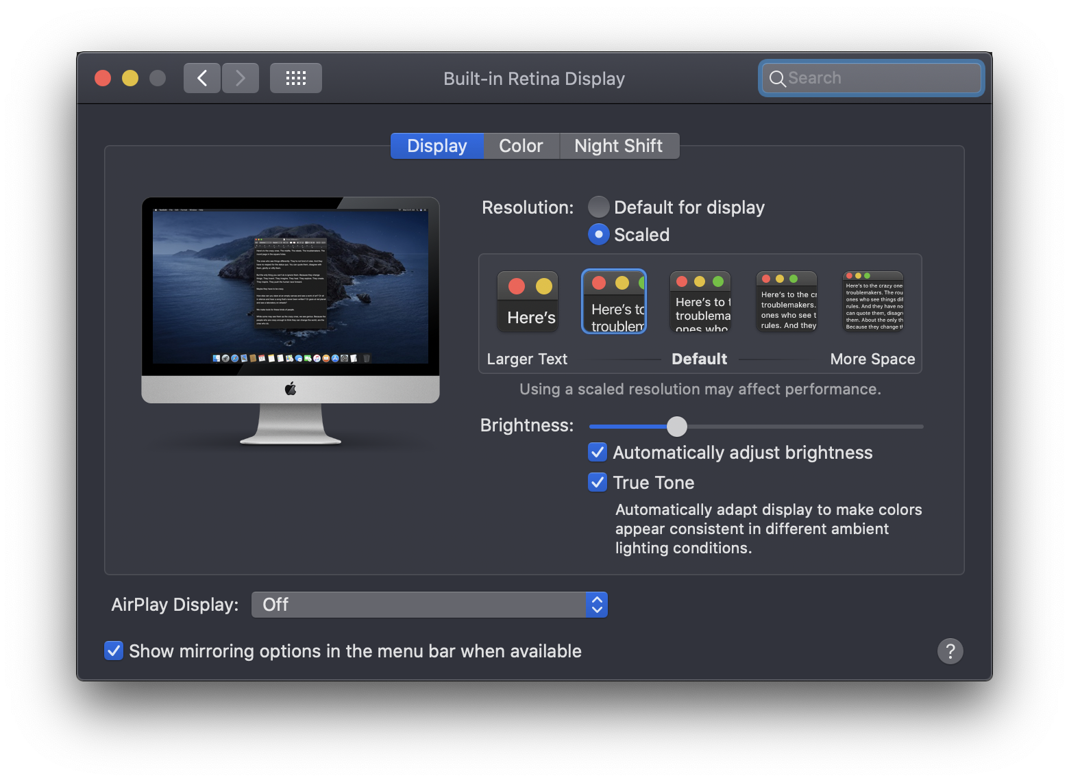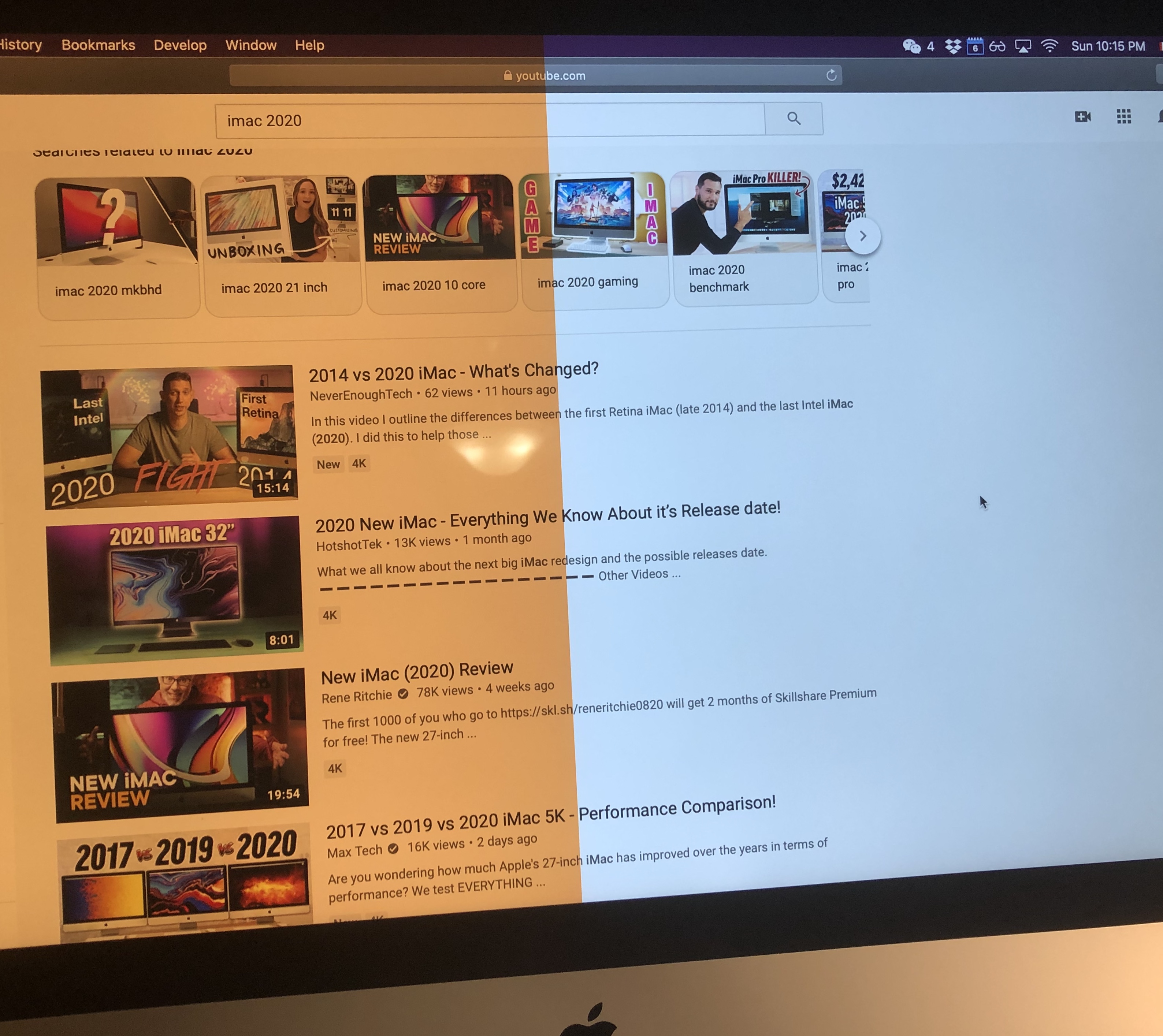 iMac 2020, i7, 5500 XT, half screen Night Shift, half screen not