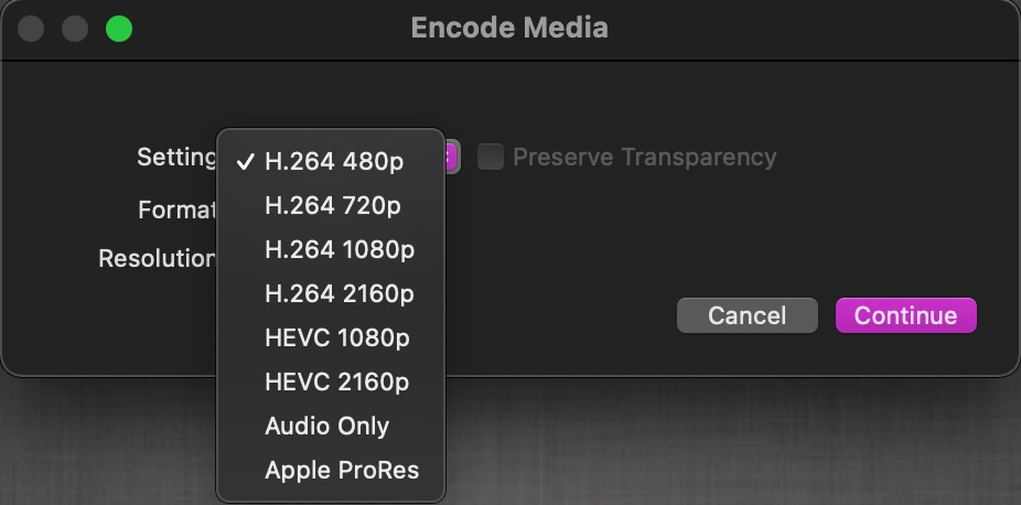 I need to export in HVEC, using the trial version, running Catalina, have the current Pro video formats installed, however no destination appears for Apple devices 4K HVEC or where the export for Master File is selected the Video Codec selection does not include HVEC either, as H264 appears with no 10bit option, where only the other 422s etc that appear allow the WG HDR output (Rec.2020 HLG).