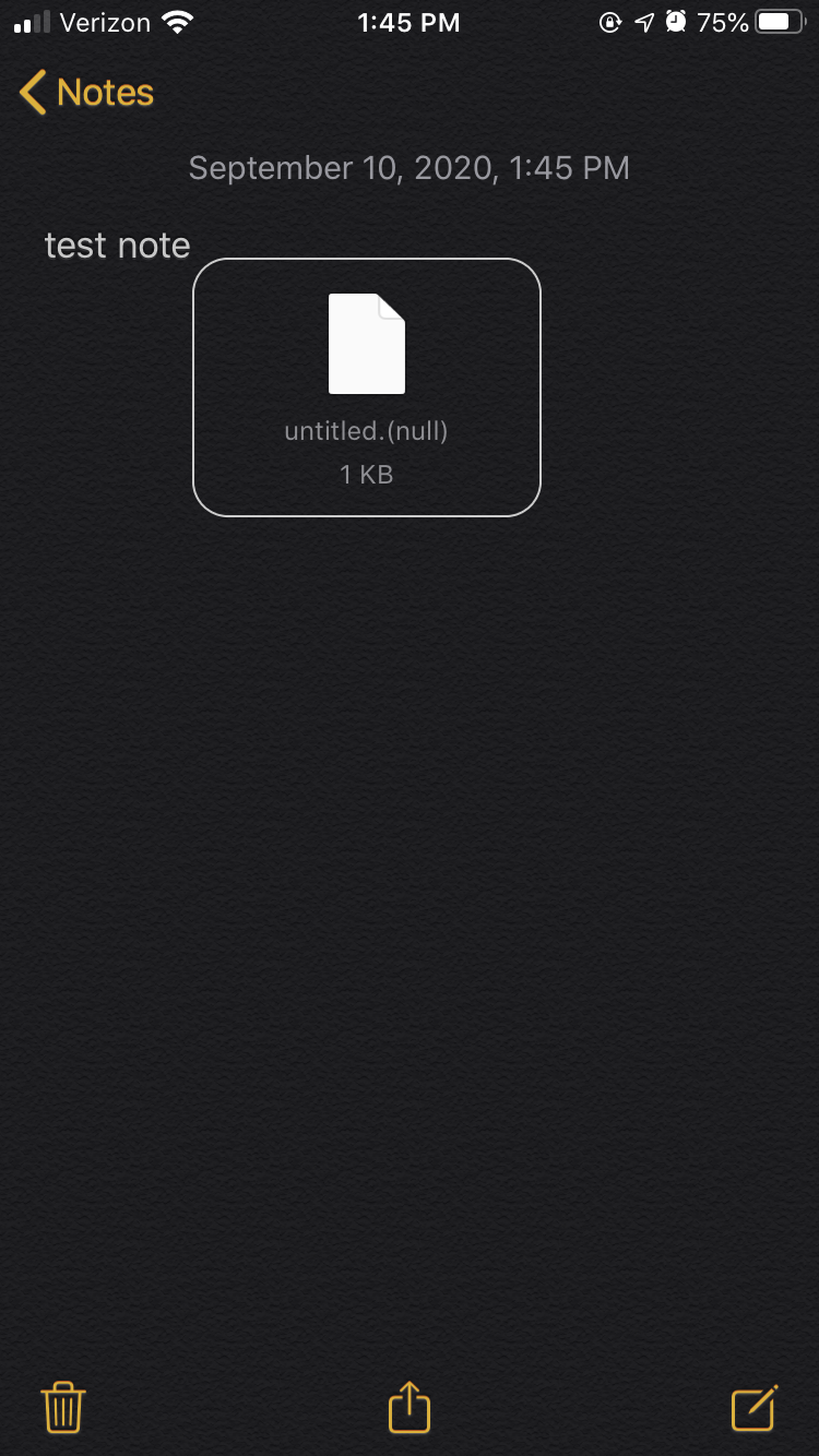 What is actually in the note? Anything more than “test note”? If so, there is some incompatibility in format between your host’s note method and the Notes app. If not, copy “test note” and paste it.