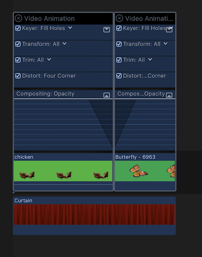 I've got a back ground clip, two green screen clips on top of the main "back ground clip". I want to add a "fade to color" transition to my green screen clips, I put them on the green screen clips, but for some reason, the entire screen below my green screen clips dips to black. Including the back ground.