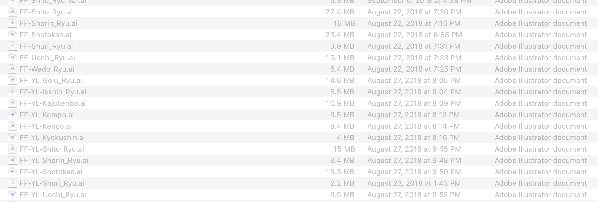 Yes, that's totally expected, but these are often files that were created in the application I'm opening them in. For example, Adobe Illustrator files that I'm opening from Adobe Illustrator. And as I said, if I choose the file it will open, and if I change the way they are listed then they all turn black. I attached two screenshots. One is when I initially open the folder from AI, and the second is after I click "Name" to re-order the list based on alphabet.