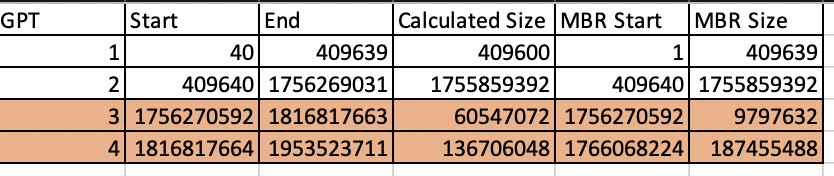 gpt show: /dev/disk0: Pri GPT at sector 1