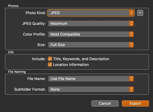 Photos 5 for Mac is not exporting Description when I choose that option. I'm exporting to JPEG and choose to export Title, Description, etc.