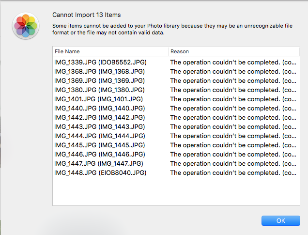 The message I get when I try to import images from my iPhone to Photos on my iMac.