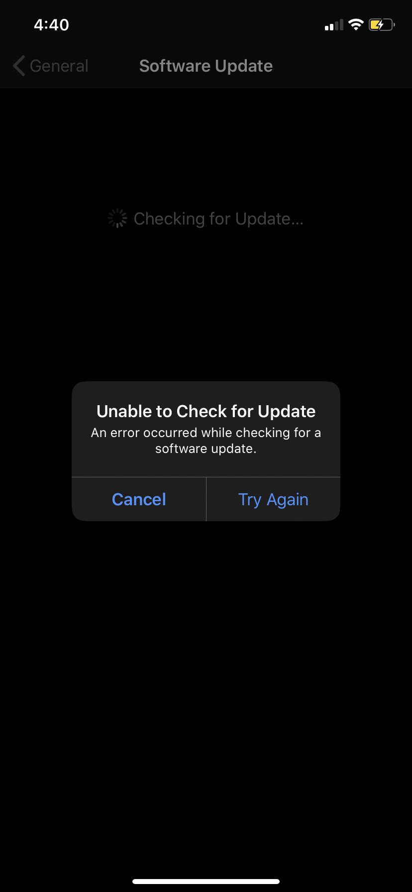 My iPhone 11 is on iOS 13.6.1 I click on software update and it’s takes a while to load then give an error what do I do I don’t have access to a computer