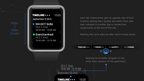 Just because I’m a space buff, tho’, it’s interesting to note that NASA did conduct a competition for a crowdsourced smartwatch app for astronauts. Here’s an image from the winning mockup: