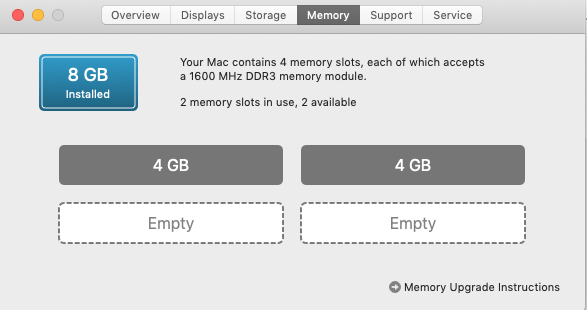 This is from my iMac which has 4 slots for memory. At a push, yours may have 1 or 2 slots. Some older MacBooks have memory that isn't upgradeable. If yours has at least 1 slot that is upgradeable, you will see the Memory upgrade instructions in the corner.