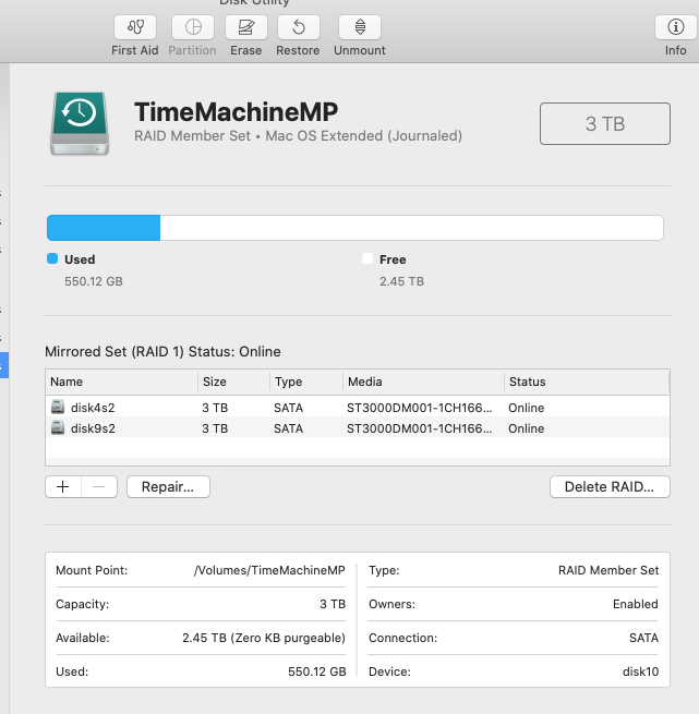 I have an external TimeMachine drive, which is a RAID 1 drive. I've been using it with Sierra, 10.12.6, until yesterday, when I went up to Catalina, 10.15.6. So, now what should I do?