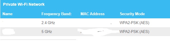 Drop down options for both 2.4 and 5Ghz networks are WPA-PSK or WPA2-PSK