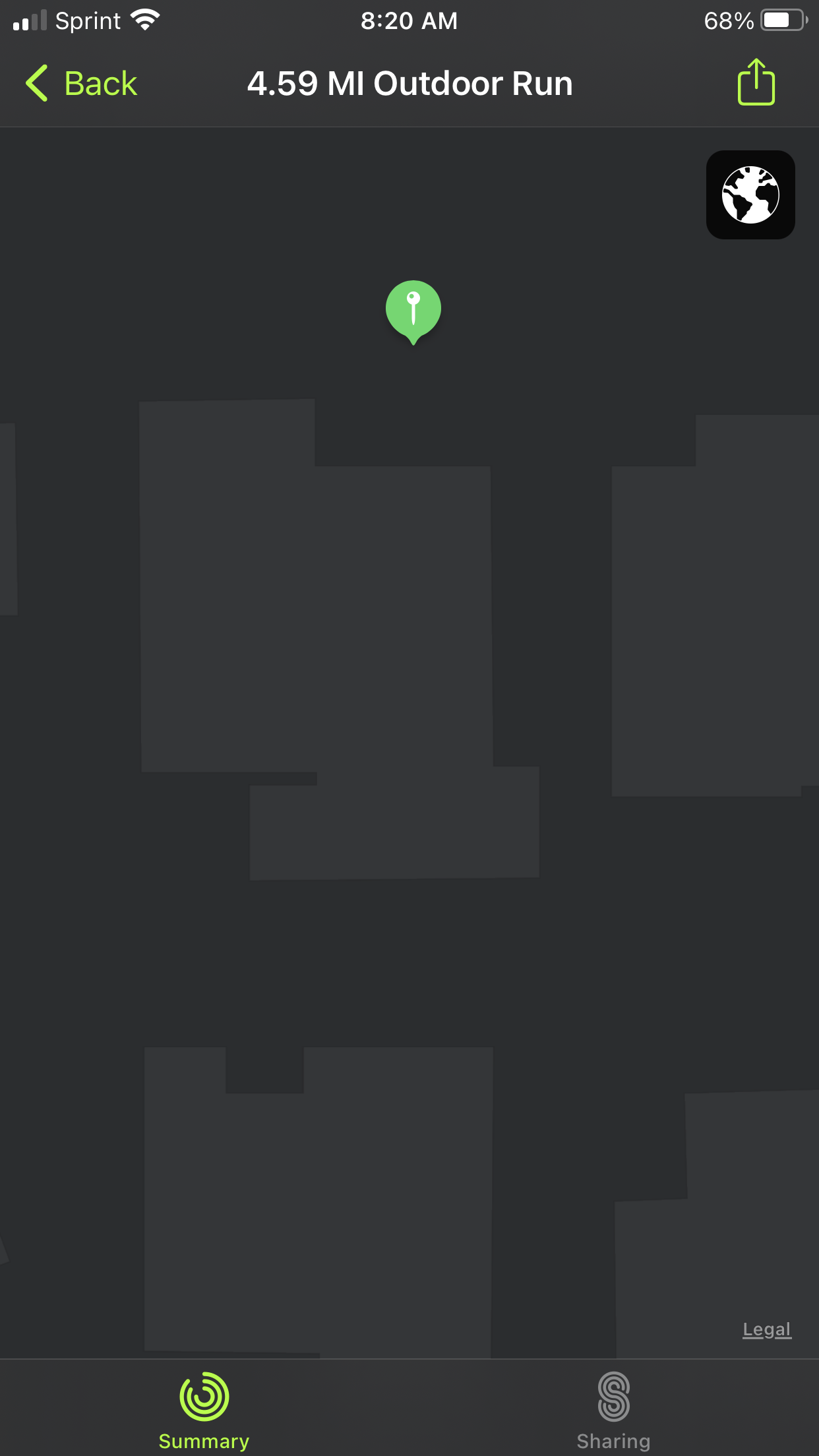 Later, I went for a walk. I used the Outdoor Walk activity on my Watch, but this time didn't take my iPhone. When I returned, and attempted to upload the activity to Strava, I received a warning that no GPS/route data was present. I checked the Fitness and Health apps, and sure enough, there was no route on the map - only the starting point.