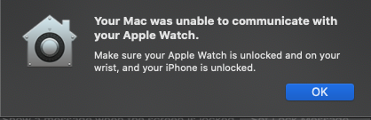 Bad News - I cannot get the watch to unlock my Mac any more. Have tried multiple times to fix but with the following error message, despite Watch, iPhone and Mac all switched on, logged in and on the same WiFi network. Have switched all off and back on etc. Still an issue.