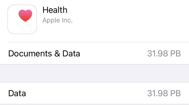 Deleted all of the Health App data, however is still showing as using 20.44GB
