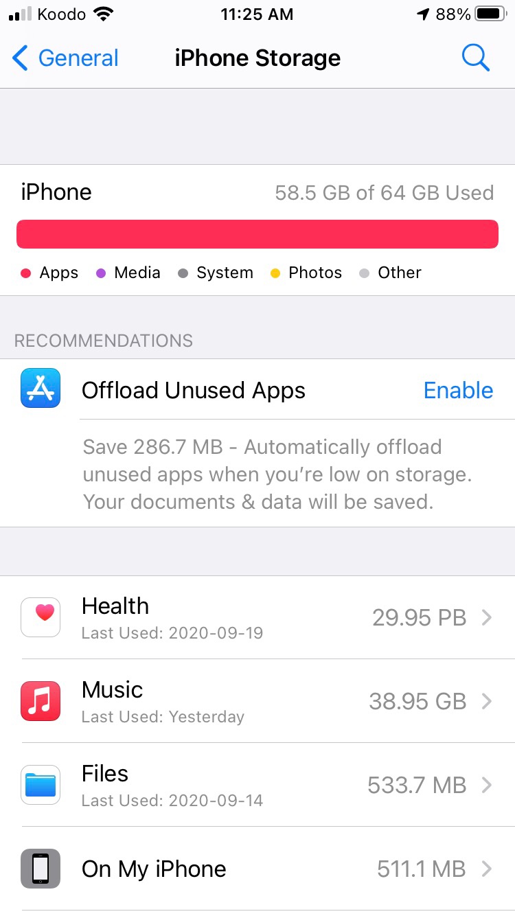 Thanks for your reply. I have attached a screenshot of my iPhone’s storage report.
