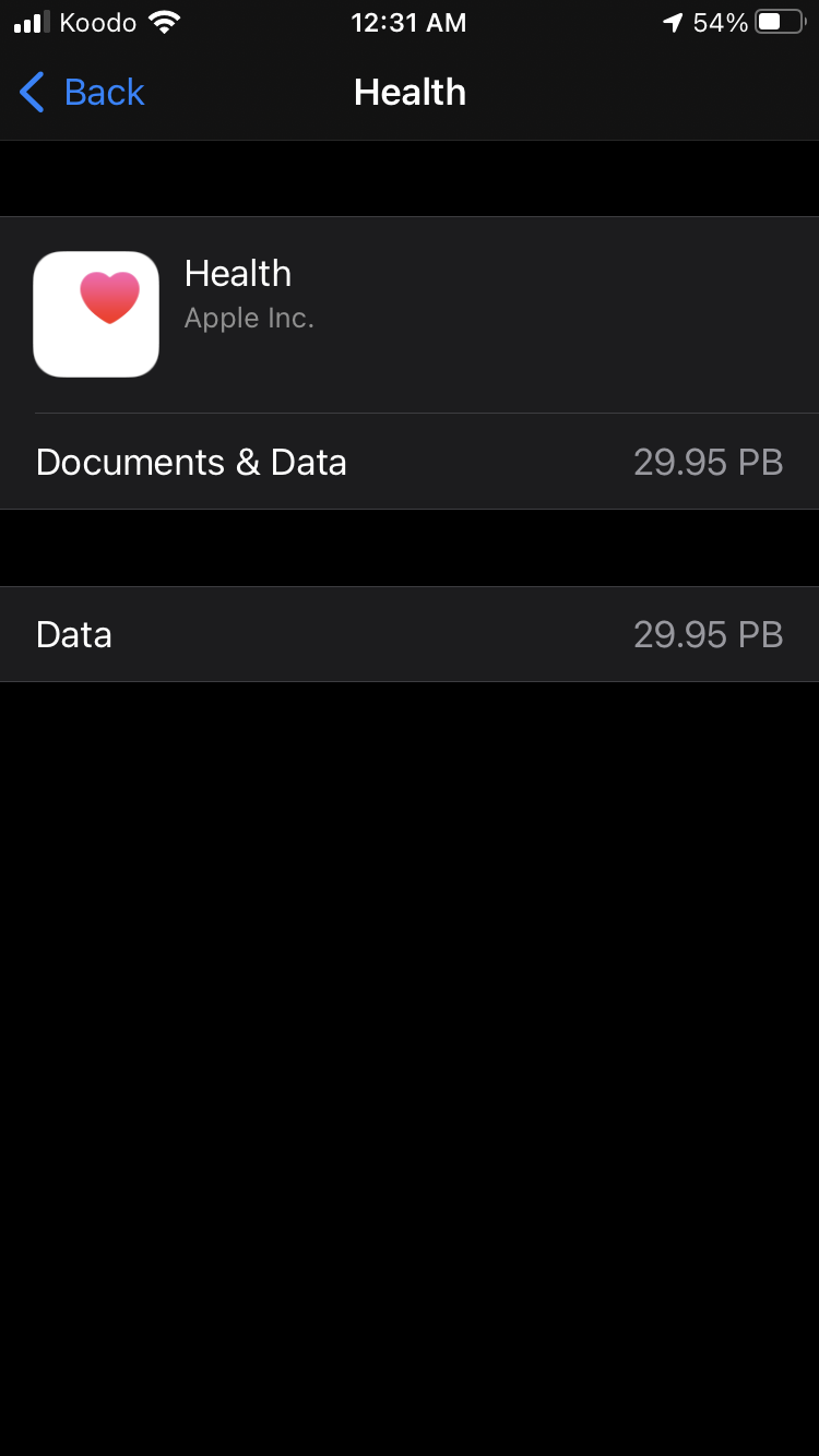 Now this should definitely be impossible. I can’t backup my iPhone to my computer because I don’t have 29.95 PB of space on it. How can I fix this without deleting years worth of health data?