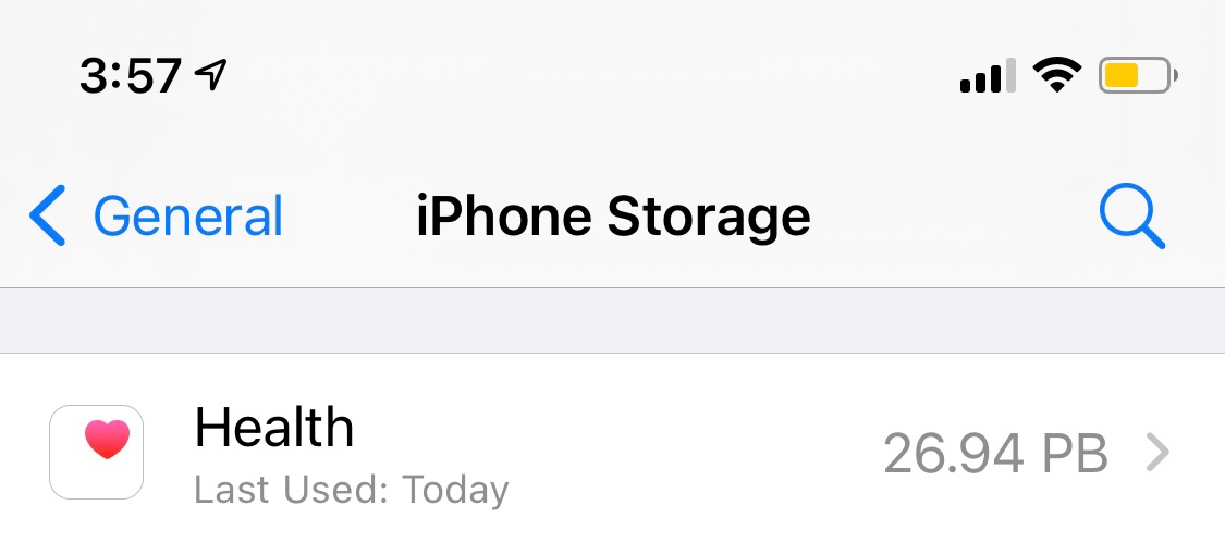 I’d already noticed that Health app was always at the top of battery usage, but I hadn’t quite clocked how much storage it claimed to be taking up.
