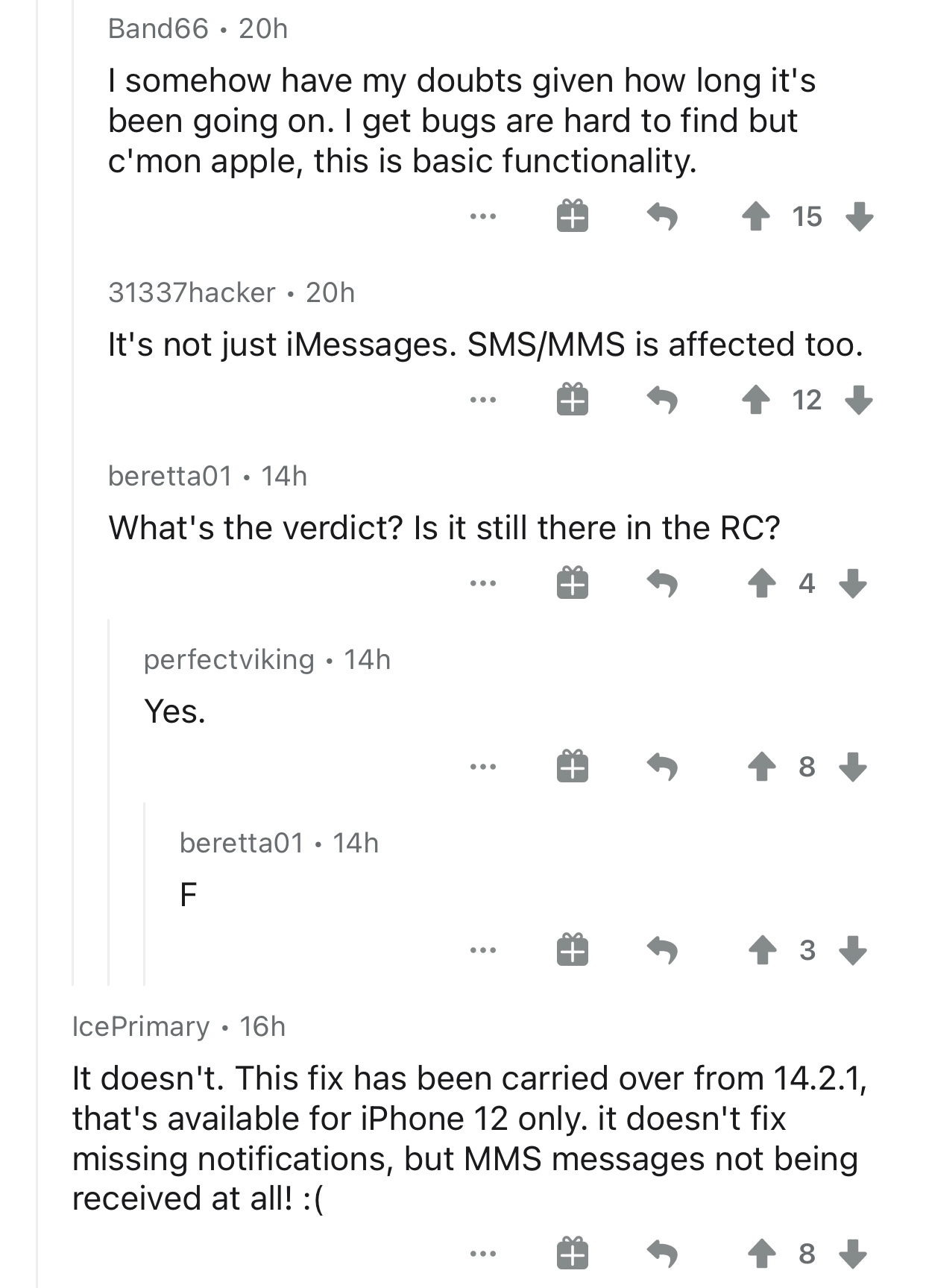 I have had this problem for months now. I have several Apple devices. Some older some new. Currently I have and use a 2014 MAC Mini, a iPad Air 2, iPhone 4s (WiFi only for music,) Watch 3, Watch 4, iPad 12.9 (2nd Gen,) iPad 10.5, and just bought an iPhone 12. I had a iPhone 7 which had the same problem of no notifications. I upgraded partly hoping the newer iPhone would solve this issue. It did not. I use the iPhone 12 and the Watch 4 as daily devices. The watch is paired with the iPhone as it should be. When I receive an iMessage or a SMS, or an email, the phone does nothing, no sounds, no Lock Screen notification, The phone is not muted, and the volume is up. The phone has been setup to provide audible and visual notifications. The Watch 4, or the Watch 3 are up to date, and setup the same way. With the Watch 4 and iPhone 12 if a message comes in, again the phone does nothing, the watch DOES NOT make a sound, but DOES give me a small tick with haptics. But nothing on its screen unless I manually wake it. I get the same thing with a received email. Curious when I receive a phone call, it all works as expected, the iPhone 12 sounds my ringtone, the Watch 4 dingles its ring sound and I get normal haptic vibration, and the watch shows me who’s calling. So phone calls work, nothing else does. If I have my iPhone unlocked, it will play the message sound and show a banner. If I lock the phone and I receive a message, nothing happens. After reading some advice on a forum, to turn off Bluetooth, the phone will work like it should with messages and emails. This is an unacceptable workaround as it defeats the main purpose of the Watch 4. This is clearly a software bug, as it has persisted through various iOS updates, and in my case going from iPhone 7 to a iPhone 12. The behavior between iPhone and Watch when paired has to be right or I will just sell both Watch’s and go back to FitBit or some other watch device. Pairing the Watch 4 with the health app is the main reason I paid up for an Apple Watch instead of a much cheaper device. Help!