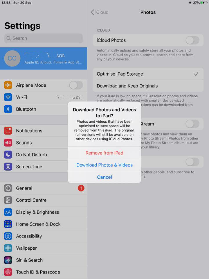 My iPad is so full that I can’t update the IOS. This is because the majority of the space is taken up by photos.