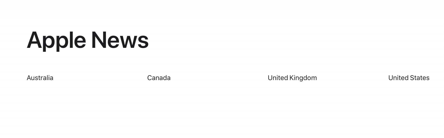 "The Apple News app is available in Australia, Canada, the United Kingdom, and the United States. Learn what's available in your country or region."