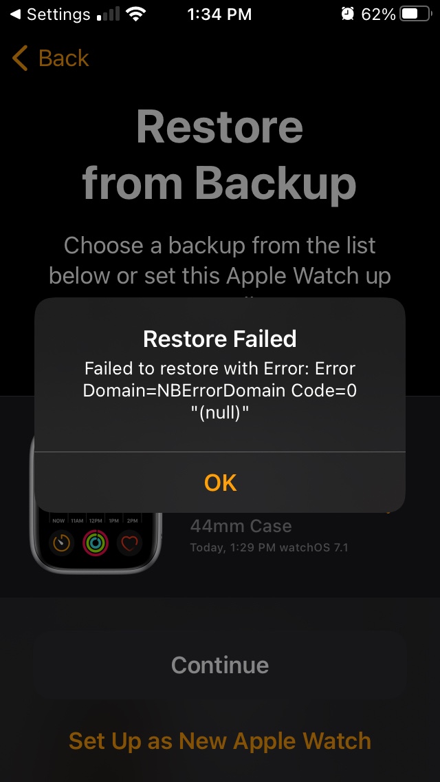 Your Mac was unable to communicate with your Apple Watch.