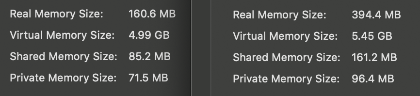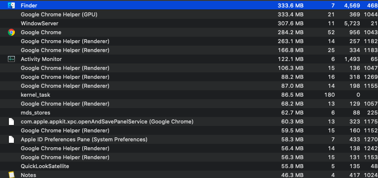 As TheLittles highlighted, you have <7 GB free storage space on a 128 GB internal drive. That is not wise – and can be crippling. It best to have 20% of your internal storage free, 10% at a minimum and you have down near 5% free. Applications need swap space for temporary files, macOS needs space for caches and virtual memory – the latter is where those swap files go, among other things, and it's essentially the macOS using SSD space as accessory RAM (which it's always done, but now with SDDs instead of HDDs the access is fast enough that it's actually useful). Below are two processes, Finder (left) and Mail that together use only 0.55 GB of physical memory but use >10 GB of virtual memory – that's more than the available space on your SSD.