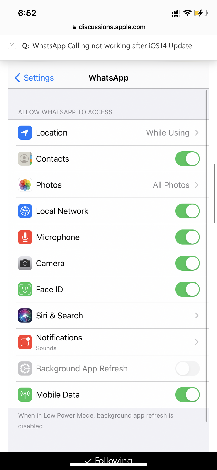Interestingly even after updating iOS version to 14.2 (or 14.2.3 ?) , my iPhone did not have any problem, until the home WiFi router was upgraded to a new Nokia ONT (Fiber modem) plus inbuilt WiFi router combination. Thats why I was not fully convinced with the iOS update itself (which earlier suggestions relating to Local Network setting pointed out). So, its quite likely that recent WiFi router updates or WiFi router settings relating to network security such as FireWall level has interfered with the WhatsApp audio/Video calls. Before modifying the firewall security level (to Low), i did a small experiment viz., using another Android phone as a HotSpot and using that WiFi connection in the iPhone . Surprisingly in this combination, iPhone was successfully able to make both incoming and outgoing audio and video calls. This successful experiment gave me the confidence to lower the WiFi router 's security level setting and then could finally conclude and solve the problem. Thanks a bunch . note: This resolution summary (3 or 4 solutions provided so far) needs to be formally sent out to the Apple dev. / support team community and to that of WhatsApp tech support team. Both companies need to have a clear blog / vlog / tech-note explaining this problem and the potential solution(s).