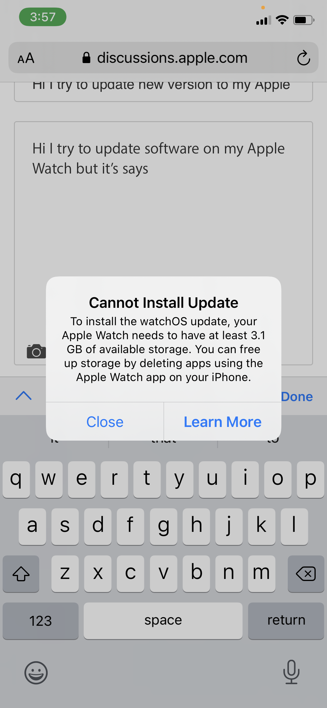 Hi I try to update new version to my Apple Watch it’s says device full so what should I do now
