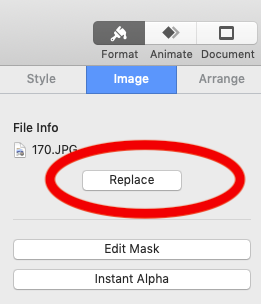 How to swap out an image while maintaining sequence, animation and timing in Keynote?