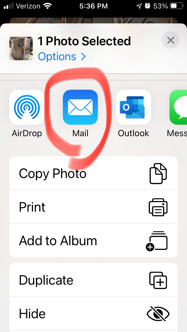 … 2 - However, if you start in Photos (as others I believe have indicated), then choose the method to share as the Outlook app, they DO in fact show up as attachments! And there's no need to attach a 1 second video...