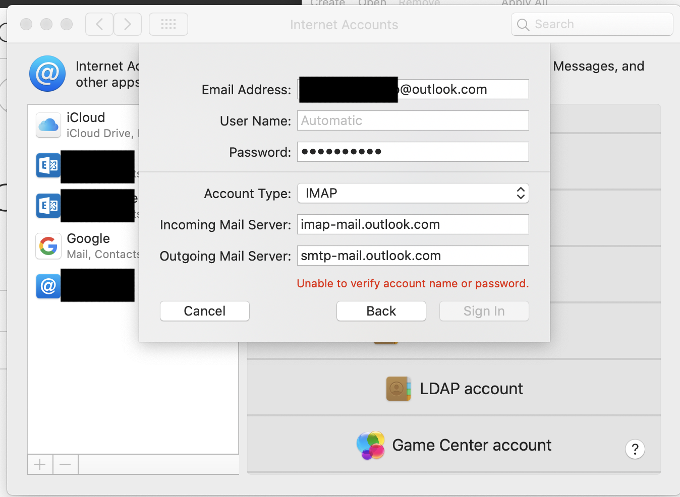 I can no longer add an outlook account on my macbook pro