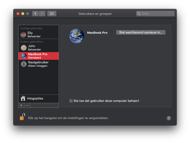 - I gave user "MacBook Pro" a new password, a simple one: "Abcd12345678" (yes, my real passwords are more complicated).