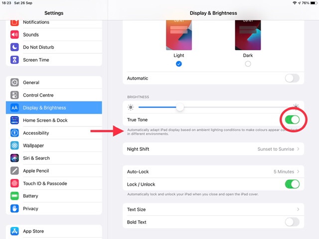 Your iPad is designed to automatically adjust both the brightness and colour-temperature of the display - in response to changes in ambient light.