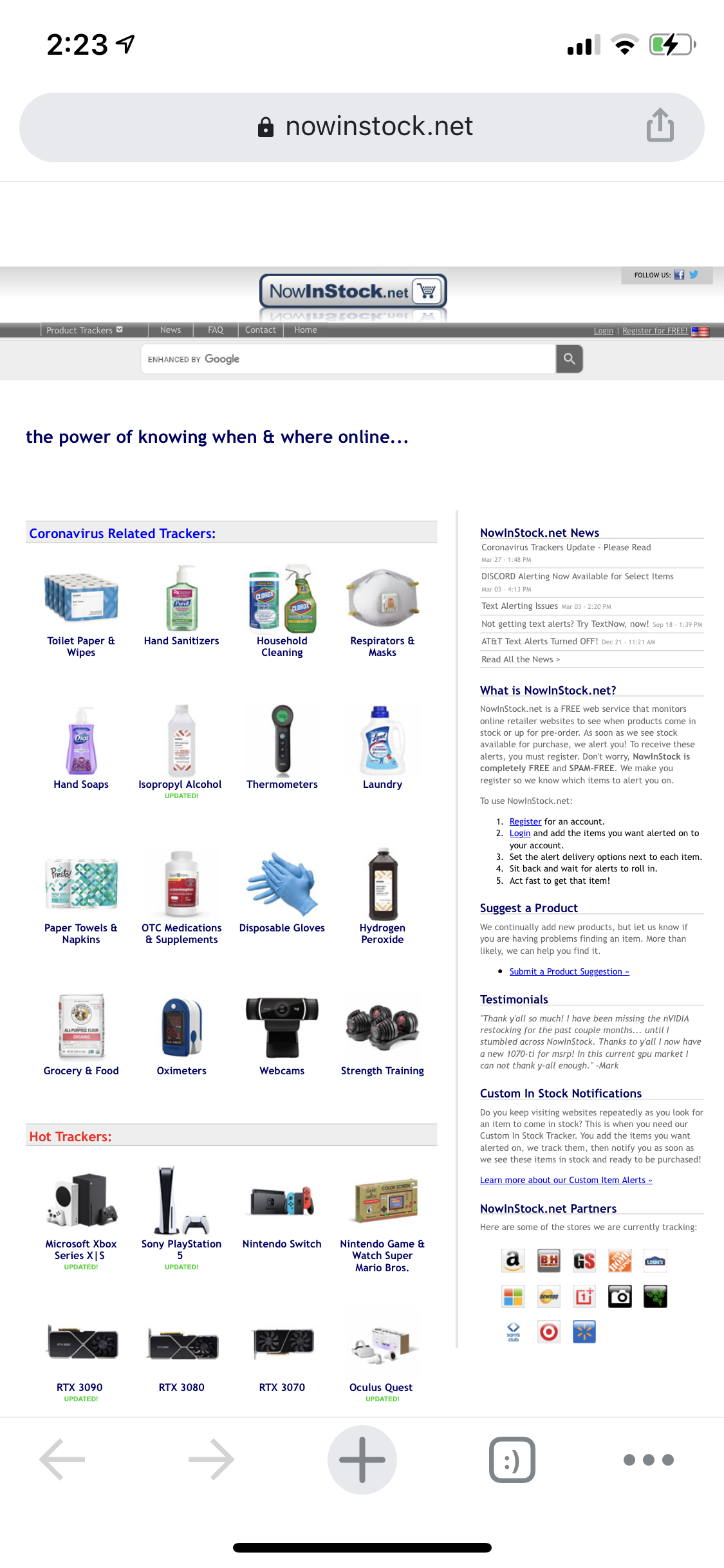 An example of it occurs when searching for an item on nowinstock.net