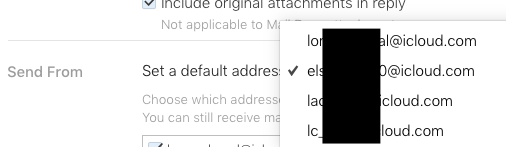 Then I sent another email from the alias email address, and it was shown as coming from my MAIN (default) name@me email address. Is this a glitch? I definitely have it set up with my main as the default, and in composing it shows that correct main/default address.