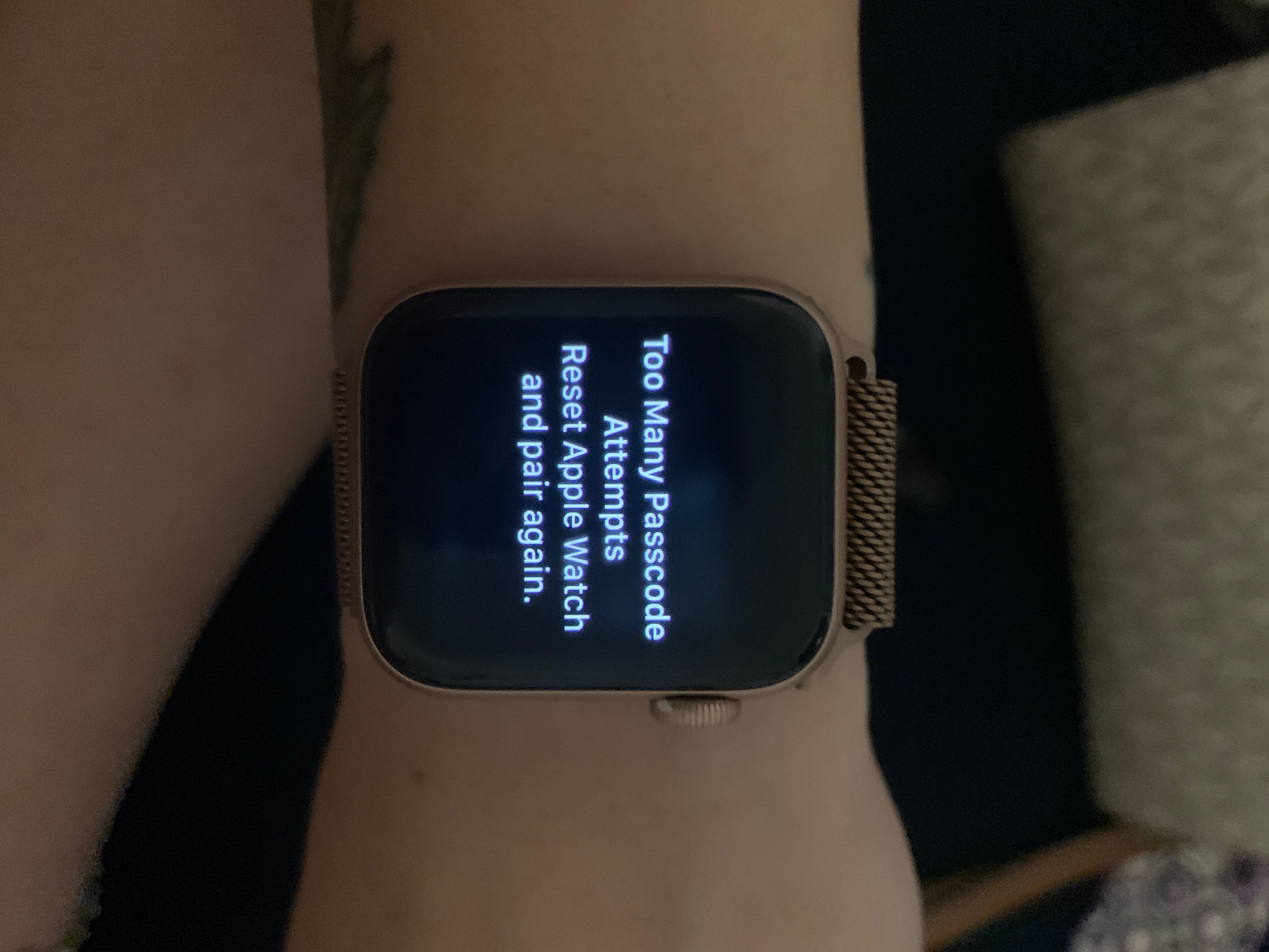 My 5 series Apple Watch won’t allow me to access it or pair it to my iPhone XR. Keeps saying too many password attempts.