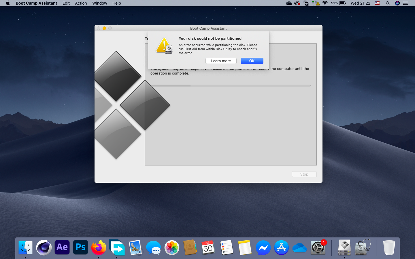 Bootcamp - Your Disk Could Not Be Partitioned.