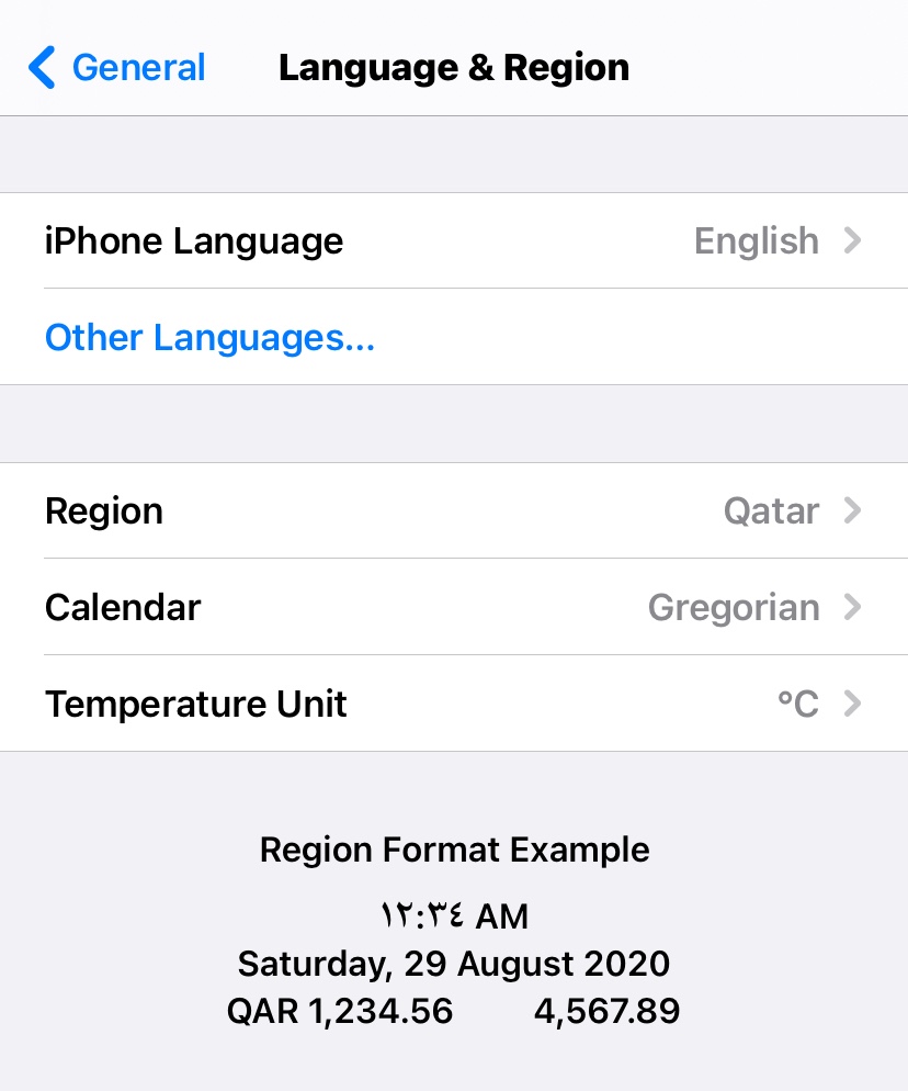 I live in Qatar and I have chosen my region as Qatar under General>Settings>Language and Region>Region