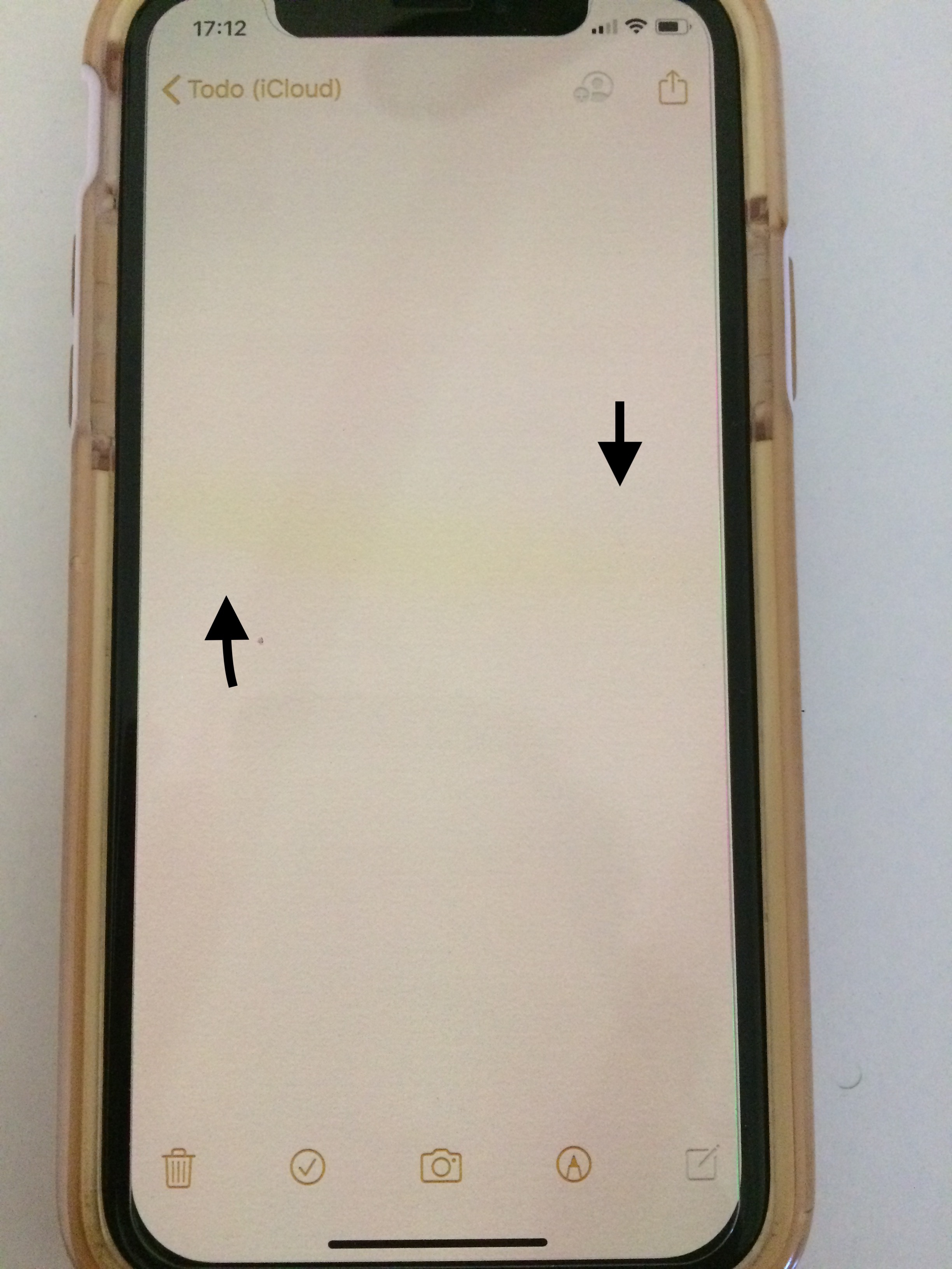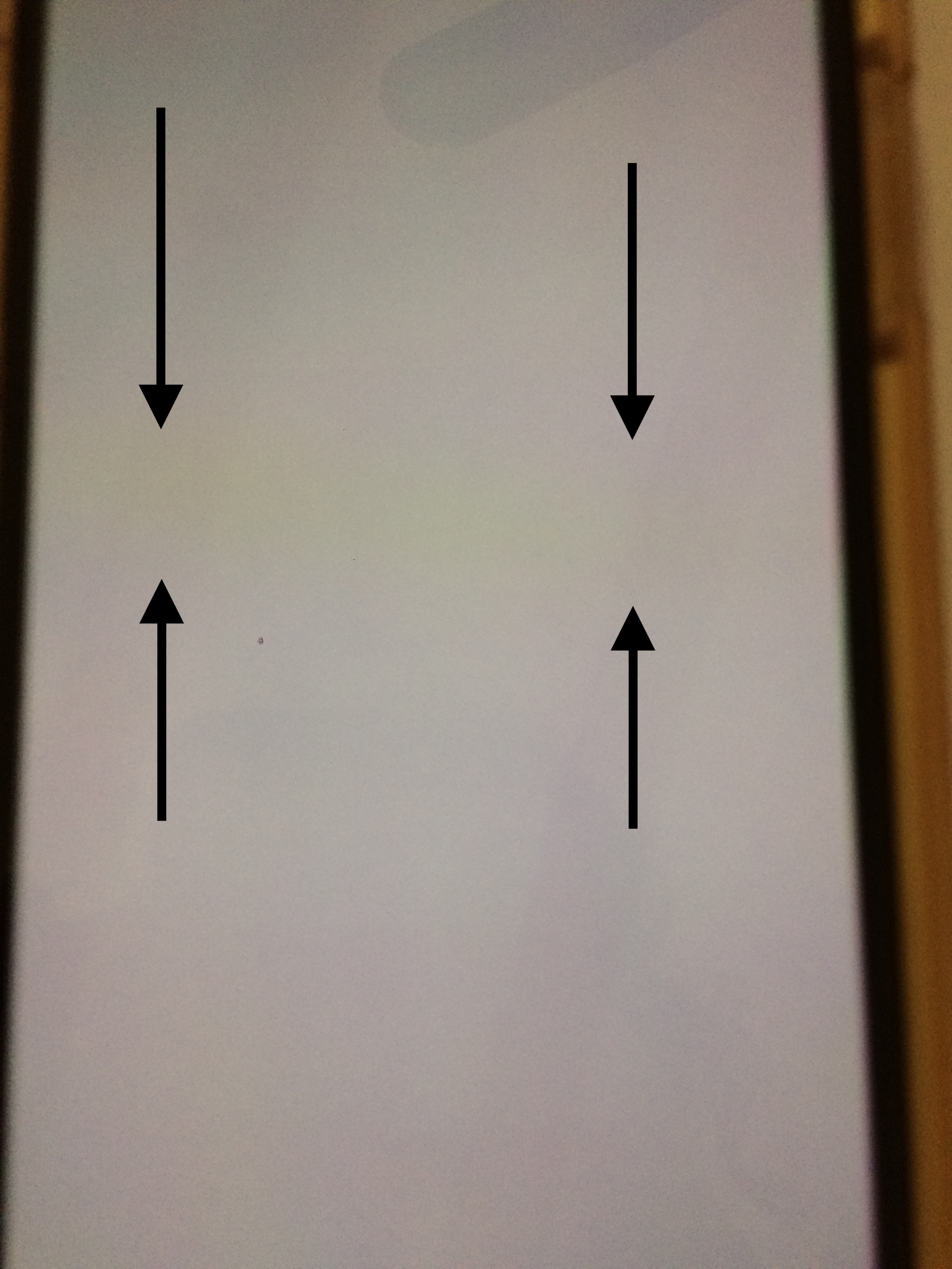 1) There is this yellow cloud shadow on the middle of the screen that goes side to side. It is Fixed. Only seen on clear backgrounds. Less obvious when 80% brightness but still there. (photos)