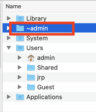 Some mistake led to /~admin (with the slash up front). As I said before this happened *before* Catalina.